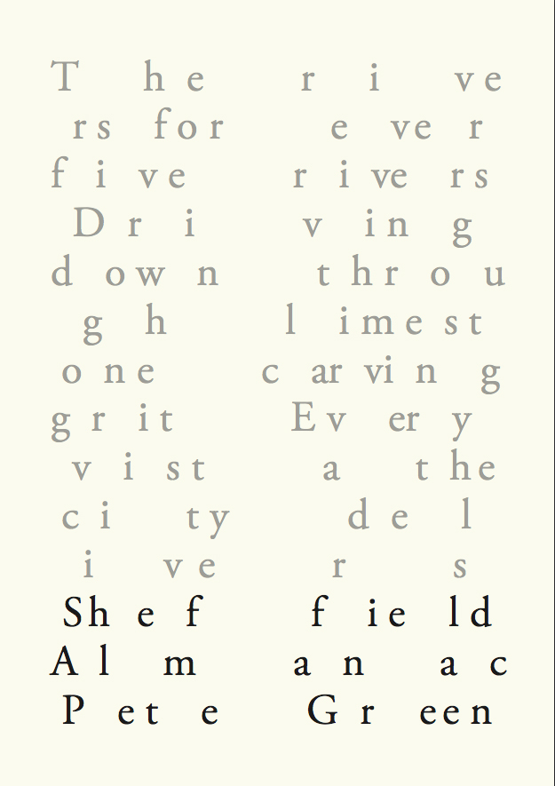 grew up in Grimsby and has lived in Sheffield since 2004. Their work is preoccupied with coastlines and other marginal locations, cities and post-industrial predicaments. Pete has been a featured poet in The Interpreter’s House; their poems also appear in The Fenland Reed, Caught by the River, Under the Radar (forthcoming), and elsewhere. A debut pamphlet Sheffield Almanac, published by Longbarrow Press in 2017, is described by Pete as “a poem in four chapters about rivers, rain, relocation, and regeneration, exploring the industrial past and post-industrial future of my adopted home city”. As a musician Pete fronts the indiepop band The Sweet Nothings and has released two solo albums, the more recent being We’re Never Going Home (Atomic Beat Records, 2016), which continues their ruminations on place and belonging.