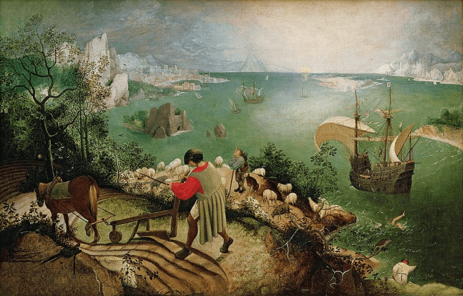 Landscape with the Fall of Icarus, Pieter Bruegel the Elder – 1. Web Gallery of Art 2. The Bridgeman Art Library, Object 3675 / Public Domain