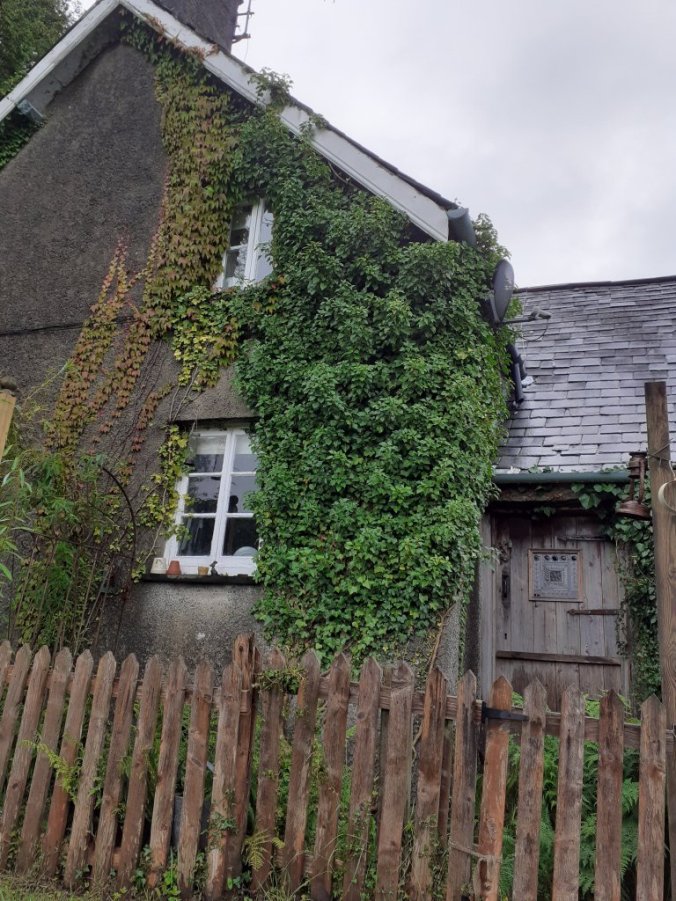 I pick up the plate and walk to the office and here is Dora – her neat grey hair encased in a plastic rain-hat.