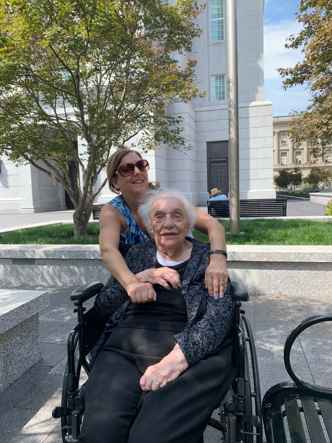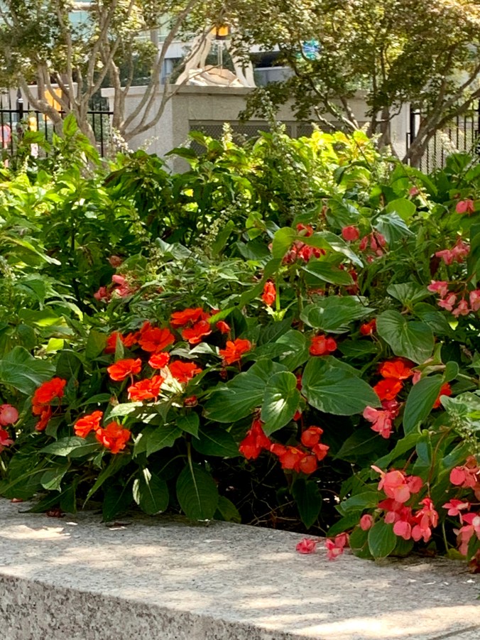 return, my mom still sits amongst the flowers.