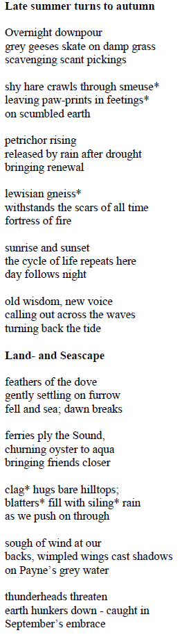 I have chosen two interlinked haiku sequences, Late Summer turns to autumn and Land and Seascape from my Iona Journal Haibun of September 2021.