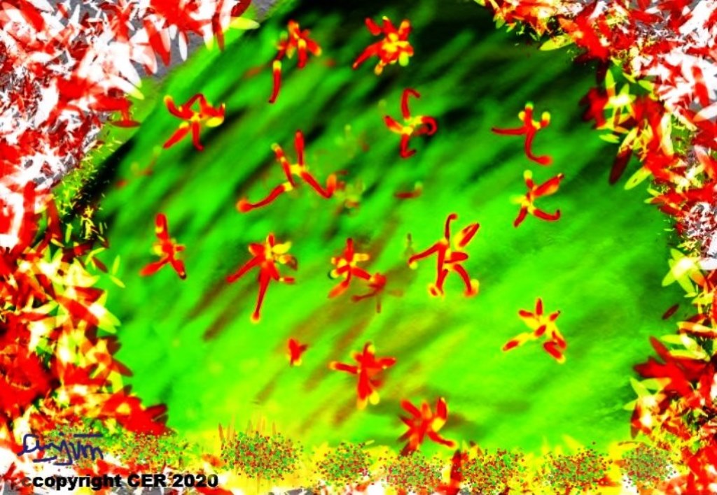 For the 18th day of Paul Brookes’ April poetry challenge, a poem inspired by the painting Playing Field by Anjum Wasim Dar. Please call by Paul’s blog to read the other poems too.