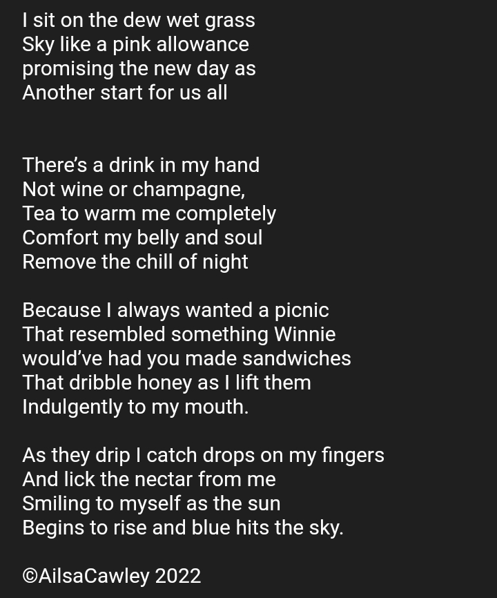#30DaysWild challenge.Day One. A Meal In The Wild. Can you make a piece of art, photo or poem/short prose based on the themes below every day in June. I will feature all on the day, and add after, too. June 1, 2022June 2, 2022 / The Wombwell Rainbow -Ailsa Crawley Share this: Click to share on X (Opens in new window) X Click to share on Facebook (Opens in new window) Facebook Click to share on Tumblr (Opens in new window) Tumblr Click to share on WhatsApp (Opens in new window) WhatsApp Click to email a link to a friend (Opens in new window) Email Like Loading... Related