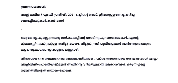 object poem, M P Pratheesh, 2021