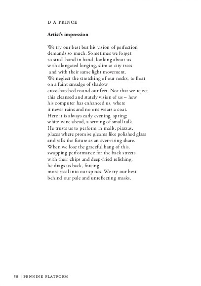 D A Prince reads ‘Artist’s impression’ (Issue 90) March 10, 2023 / The Wombwell Rainbow Pennine Platform View original postShare this: Click to share on X (Opens in new window) X Click to share on Facebook (Opens in new window) Facebook Click to share on Tumblr (Opens in new window) Tumblr Click to share on WhatsApp (Opens in new window) WhatsApp Click to email a link to a friend (Opens in new window) Email Like Loading... Related