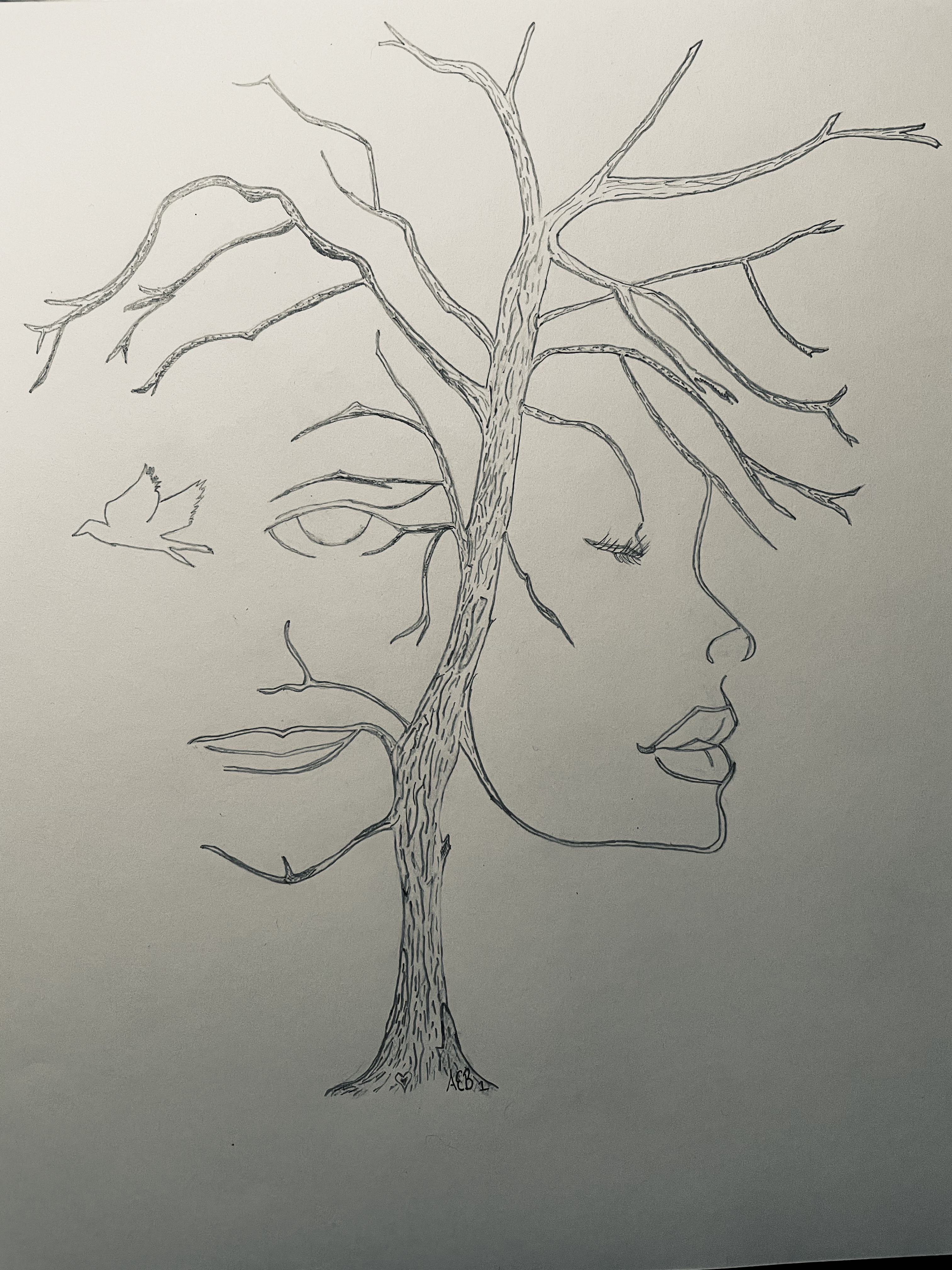 Find the mouth, the eyes in the trees scribble