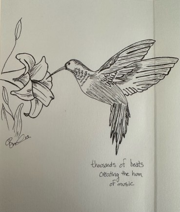 thousands of beats creating the hum of music overwhelming waves blissfully drowning in music spring’s canvas splattered with a painter’s yellow brush worn out six string millions of stories to share that are out of tune Thank you for considering my art and poetry.