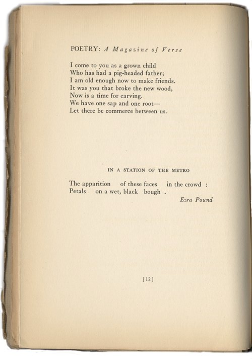 The April 1913 issue of Poetry magazine contained this now-famous short poem by Ezra Pound: