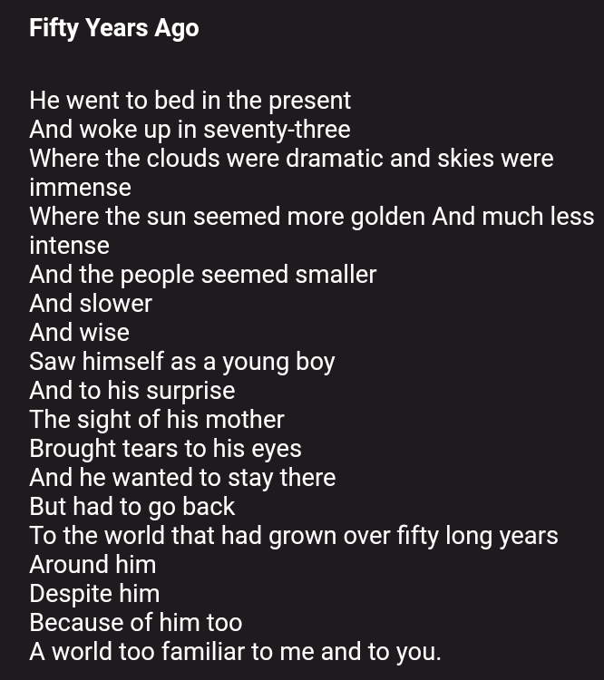 Evans the Death, the undertaker, laughs high and aloud in his sleep and curls up his toes as he sees, upon waking fifty years ago, snow lie deep on the goosefield behind the sleeping house; and he runs out into the fields where his mother is making Welshcakes in the snow, and steals a fistful of snowflakes and currants and climbs back to bed to eat them cold and sweet under the warm, white clothes while his mother dances in the snow kitchen crying out for her lost currants.