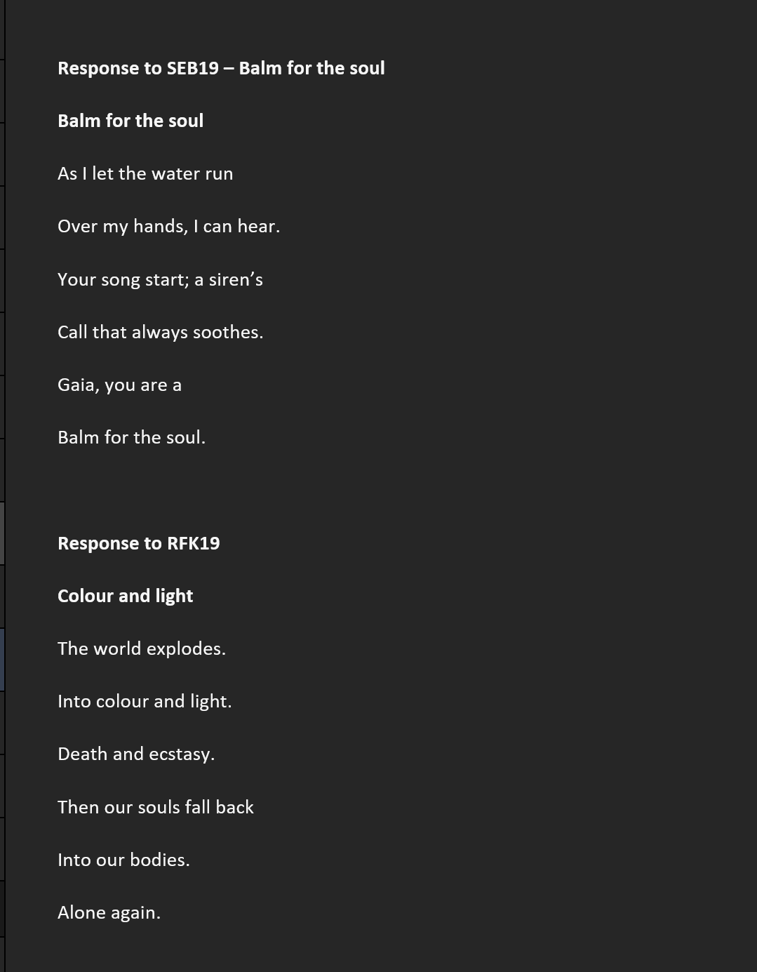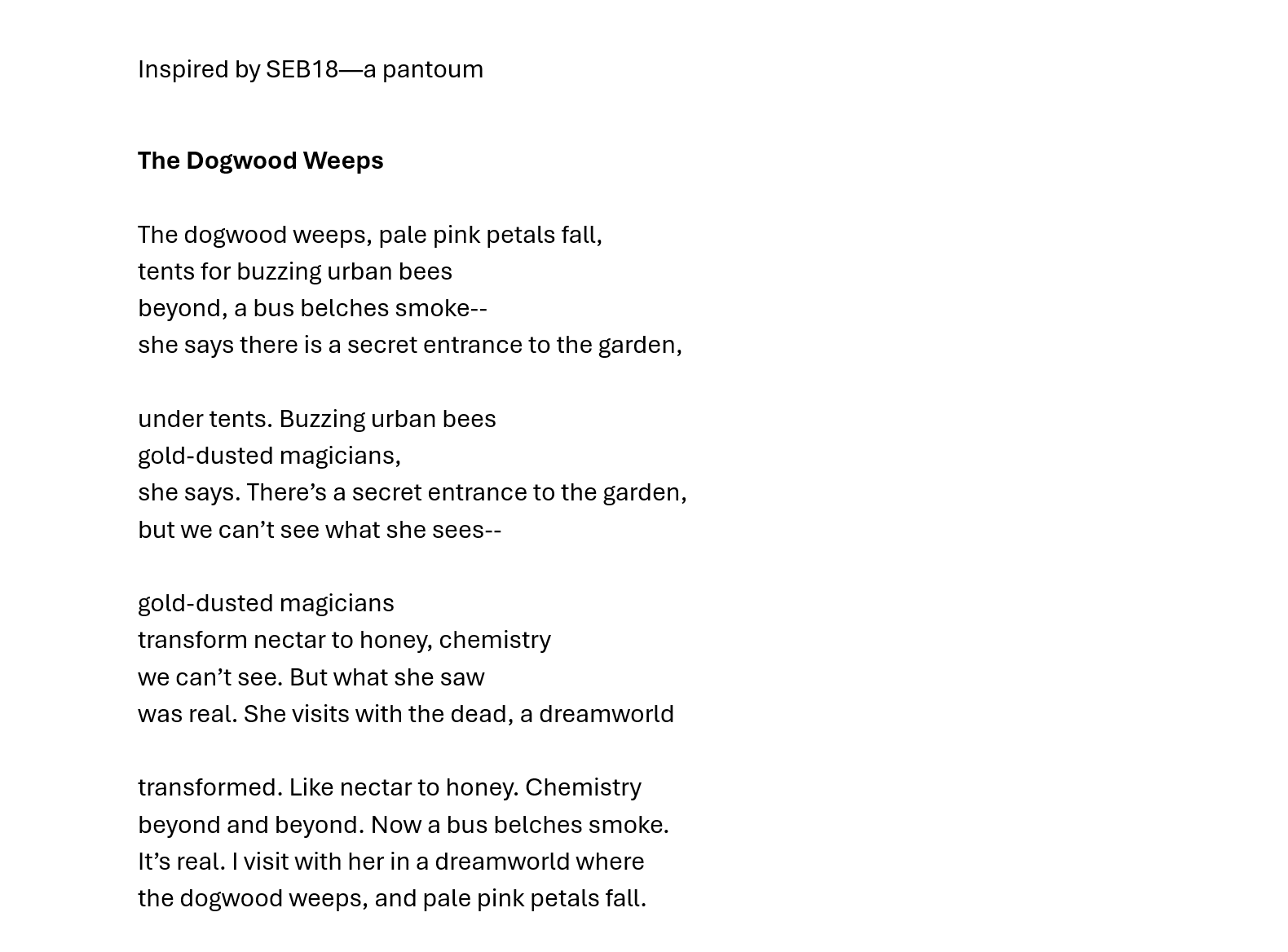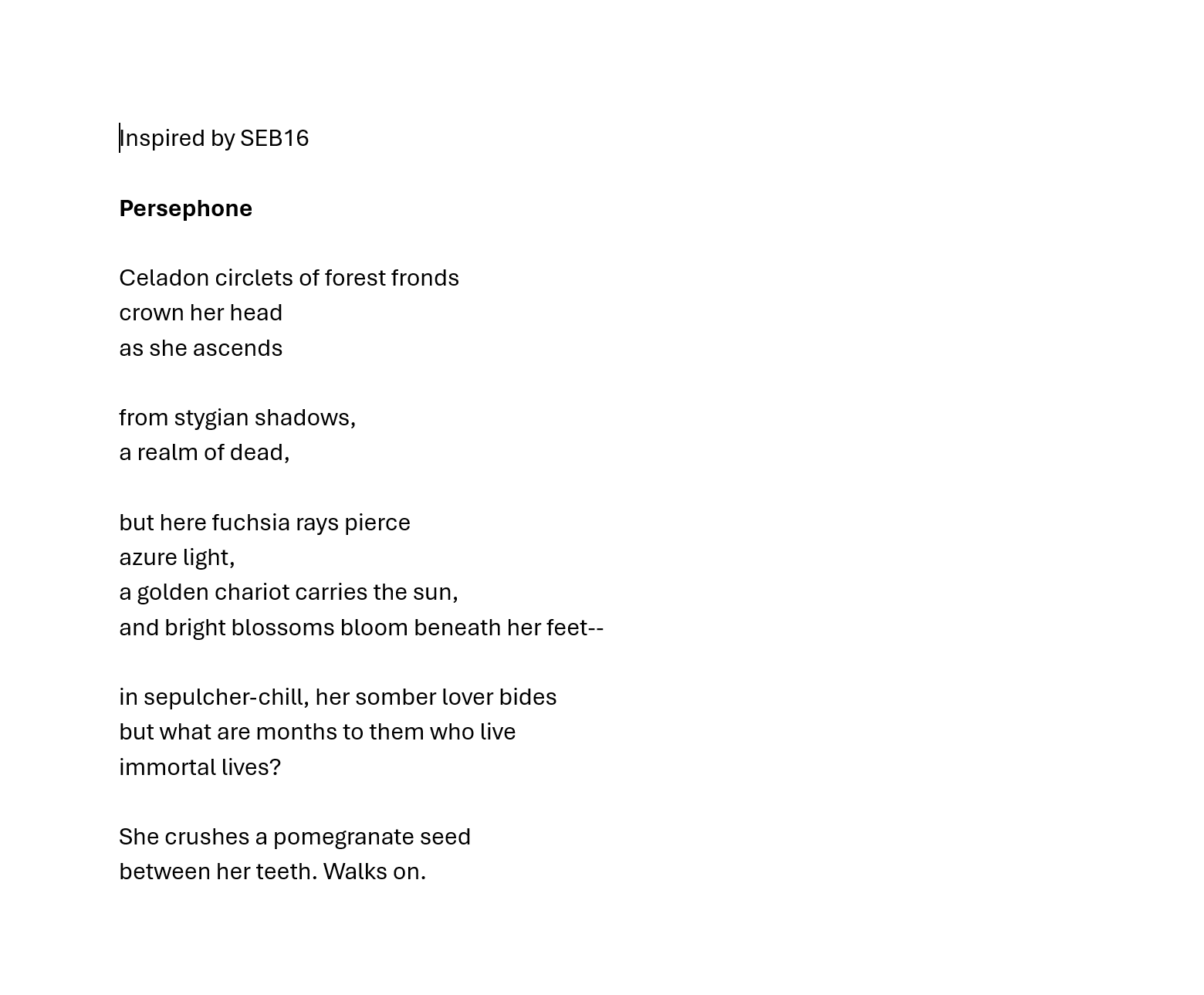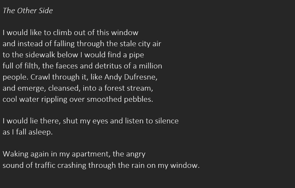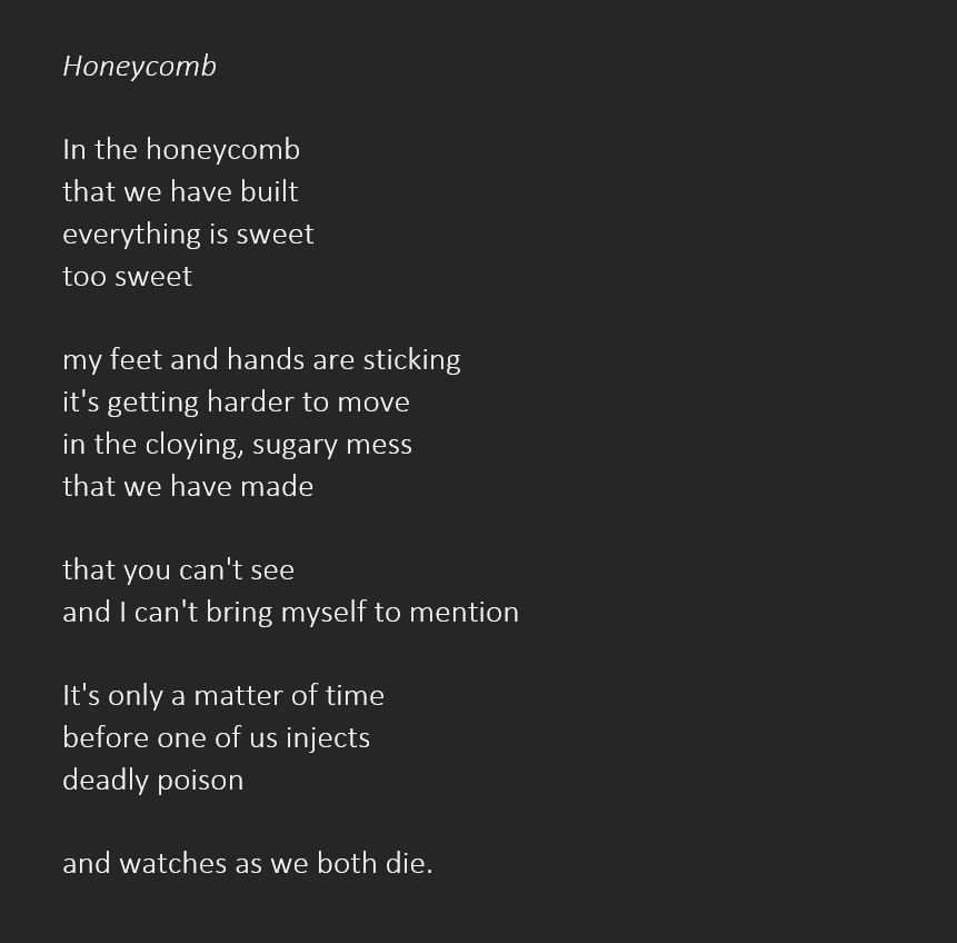 lives in Gloucestershire, UK. His poems have appeared in @litscihub,Steel Jackdaw, iamb, Fevers of the Mind, Roi Fainéant, Ice Floe Press, The Dawntreader, After…, Alien Buddha, @TopTweetTuesday, Wombwell Rainbow, Black Nore Review, Lit.202, Sidhe Press, Black Bough Poem