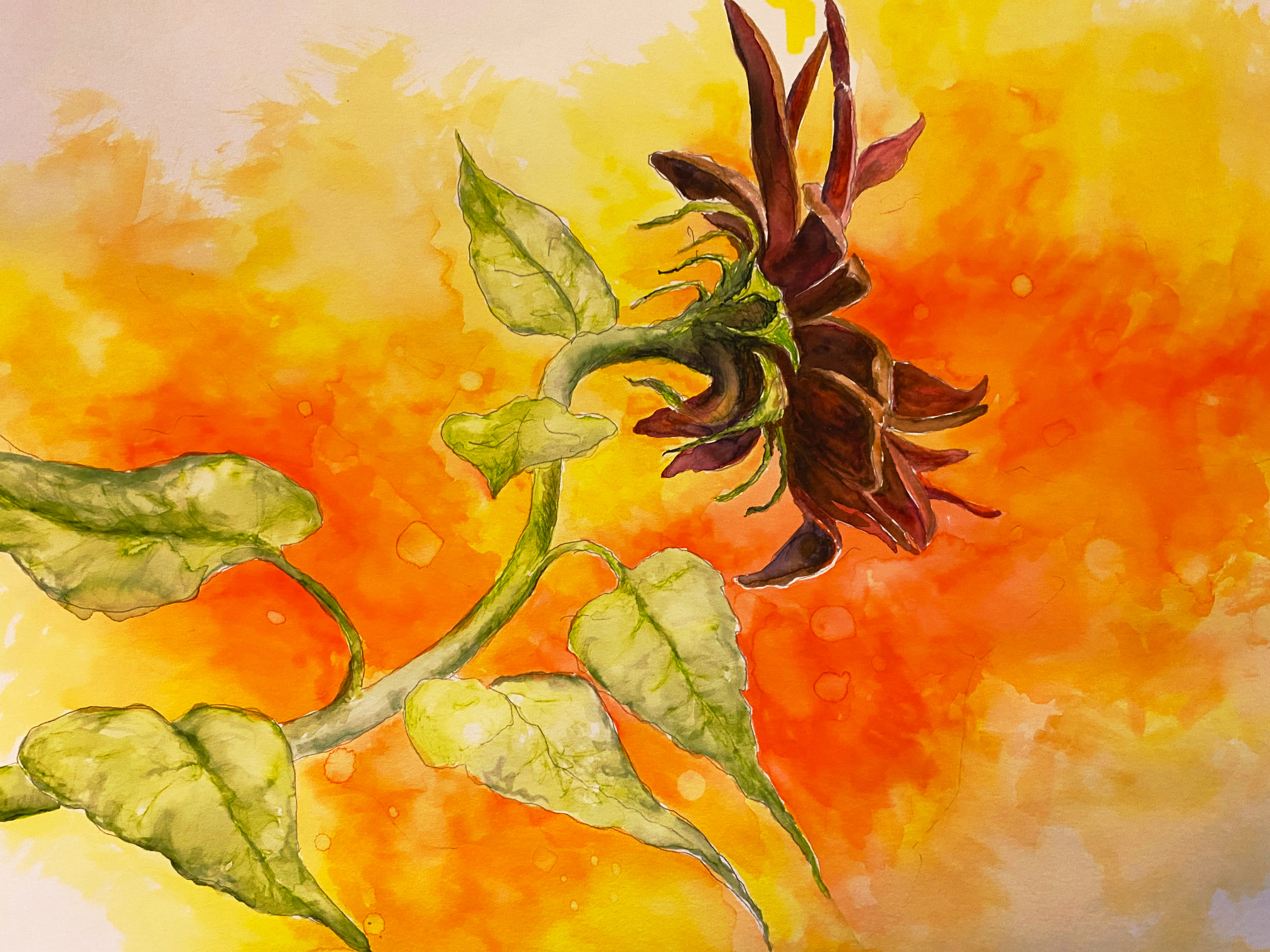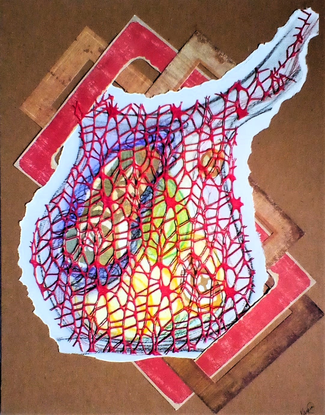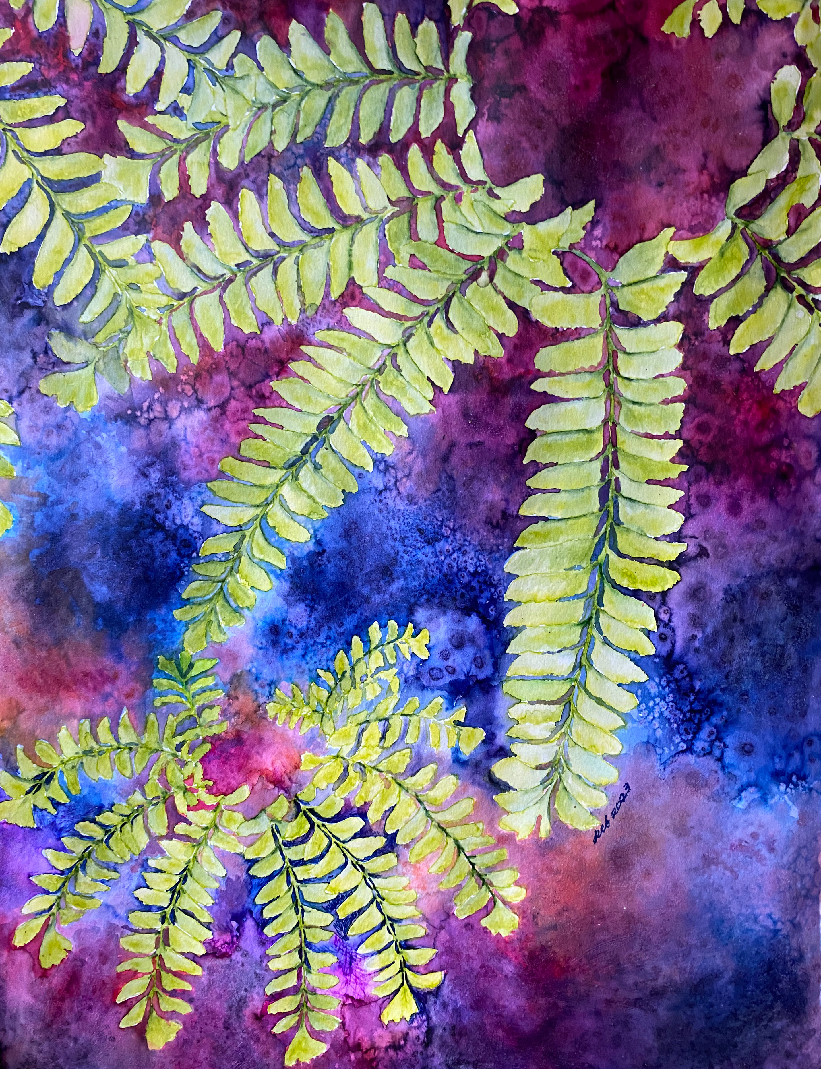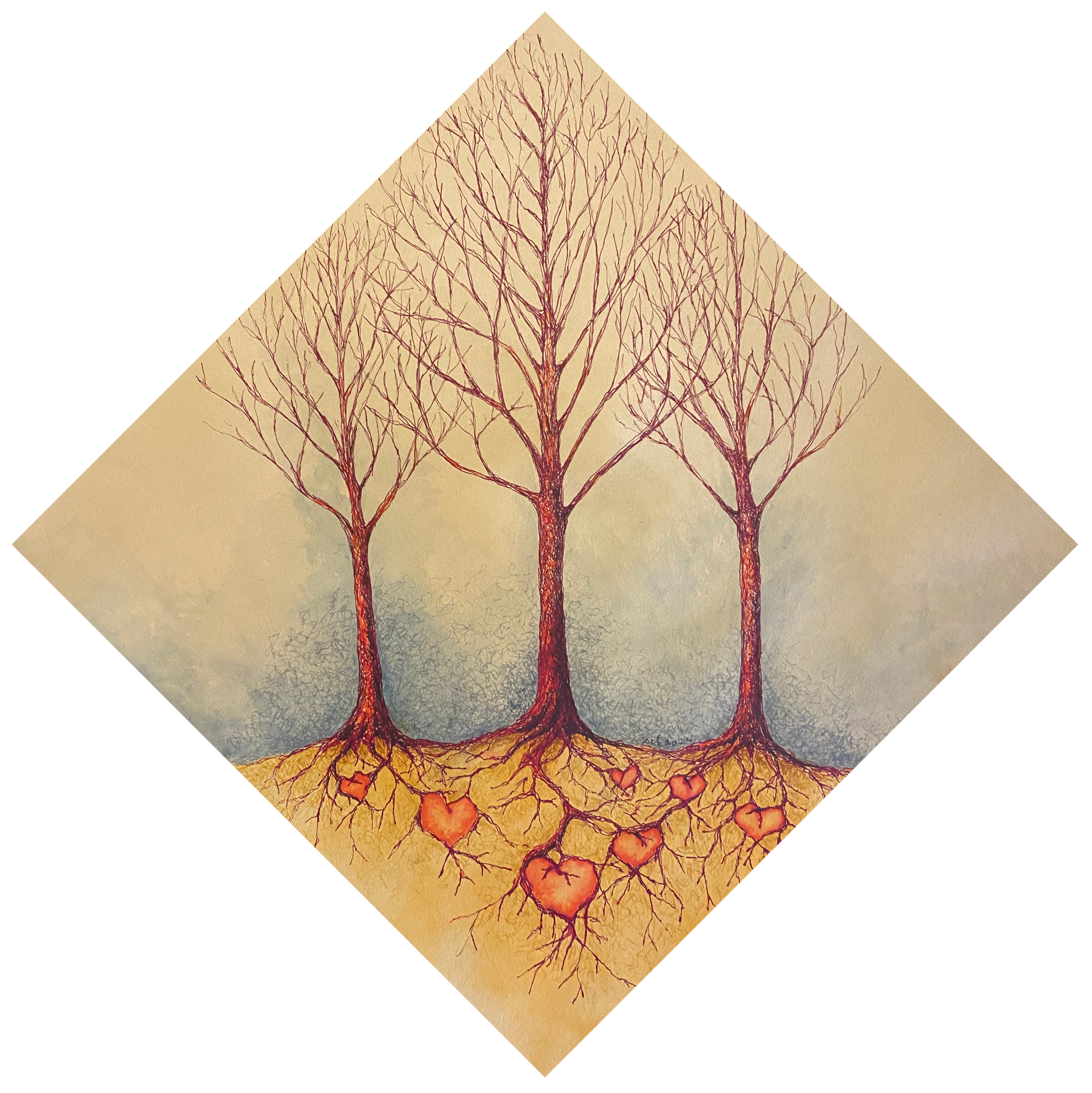 At other times, Sara returns to the discipline of detailed watercolor painting, drawing and intaglio printmaking to develop her images further. Allowing her to explore deeper themes inspired by her exploration of Brene Brown’s Atlas of the Heart and the therapeutic journey she has been on with her ausome son and her neurotypical daughter.