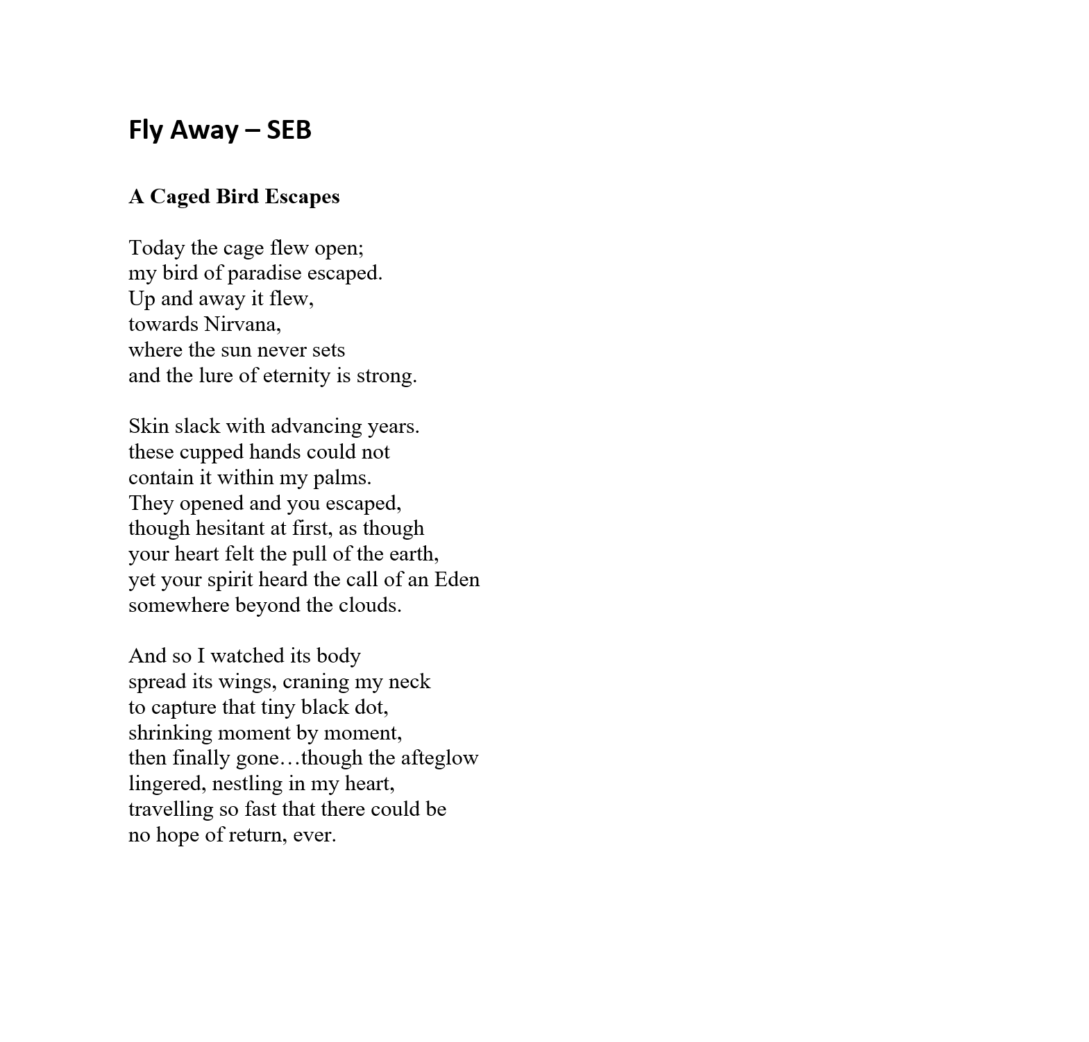 An International Award Winner Poet of Merit, Bronze Medal, ISP USA-2000, Short Story Writer, Author of a Novel for Young Adults, “The Adventures of the Multi Colored Lead People” (Unpublished)
