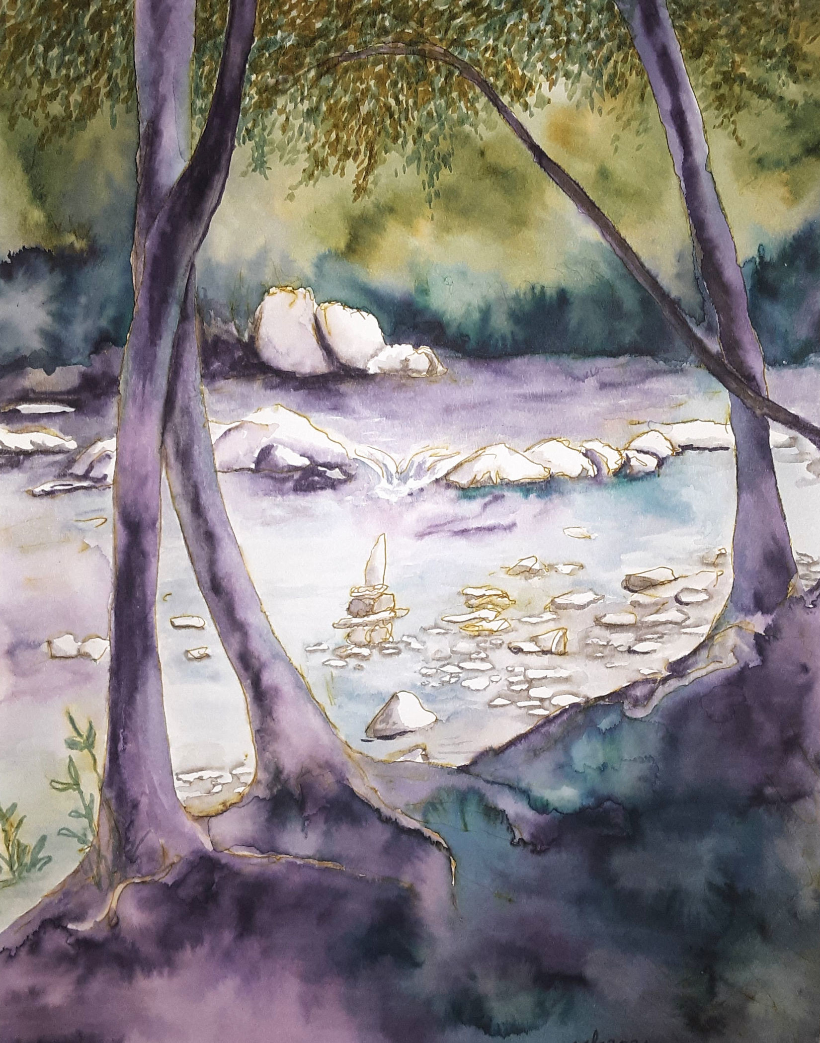The results of those trips are sketches of the forests around me and photos. I work from the photos to create my watercolors and intaglio prints. I hope you enjoy them and can find a place in your home to adopt one or more.