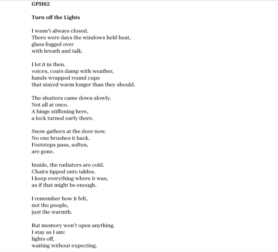 Luke is a Welsh performer and poet who discovered a love of writing during the lockdown. Luke mainly writes on Bluesky @sonnetsmith.bsky.social but has also been published in a couple of publications, including the British Fantasy Journal, Icebrakers Lit. Muse Pie Press, From One Line, and Oatleaf Poetry Journal.