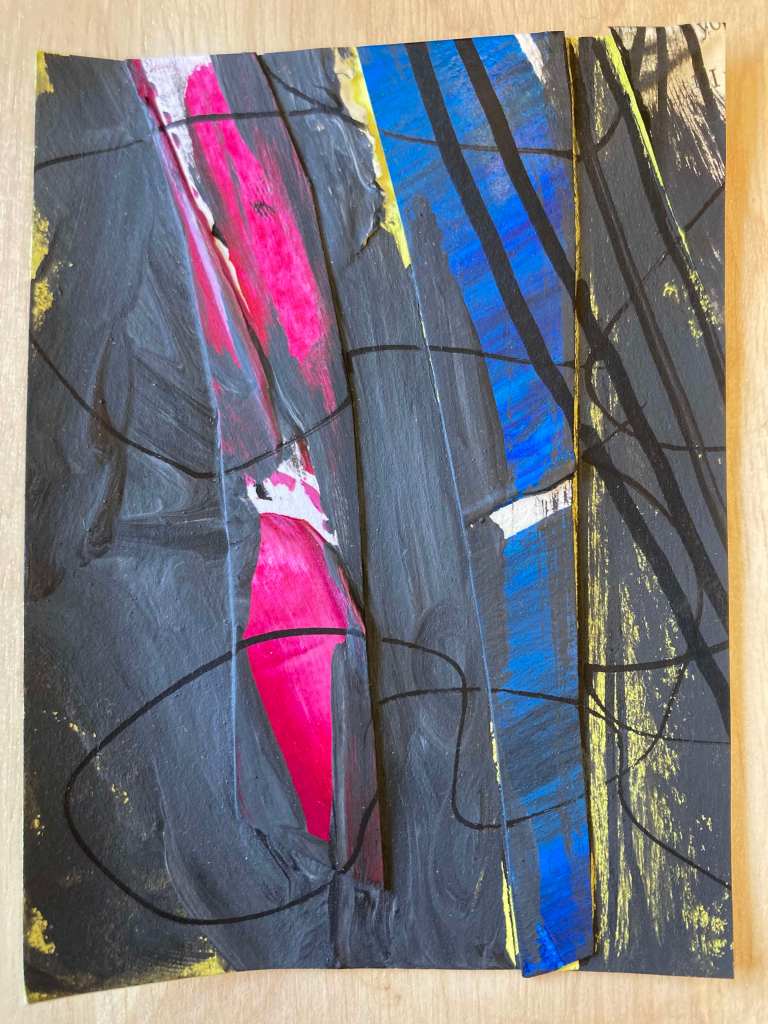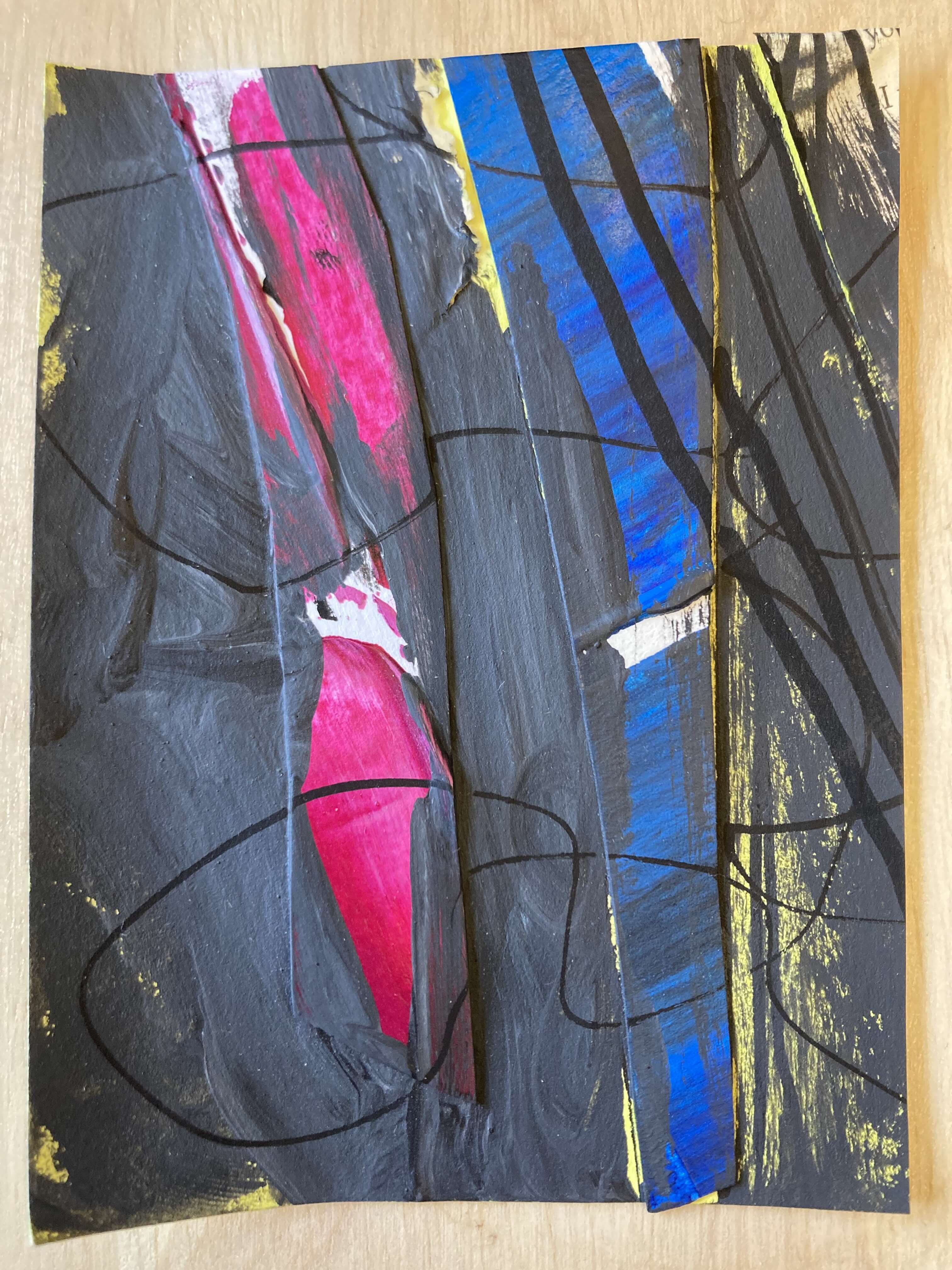 In this April 2026 collection, “New Light, Returning Daily,” I wanted to explore using familiar materials with unfamiliar methods. I combined off-cuts from my “scrapings” paintings, pages from a rescued Bible that had been damaged, and a variety of mixed media materials to make something new with collage in a cohesive collection. When I consider how day-to-day life can feel mundane, the same day-after-day, or simply a repeat of dull life that offers next to no progress, I easily miss the beauty in small, secret, quiet moments. As this series of 30 pieces unfolds, I created it to capture the variety, emotions, beauty, and depth of everyday life on the daily; viewing each piece (or, each day this month) separately may reveal one thing for a viewer, but to experience each piece together may offer a new perspective, a new light, on our everyday mundane upon returning daily.