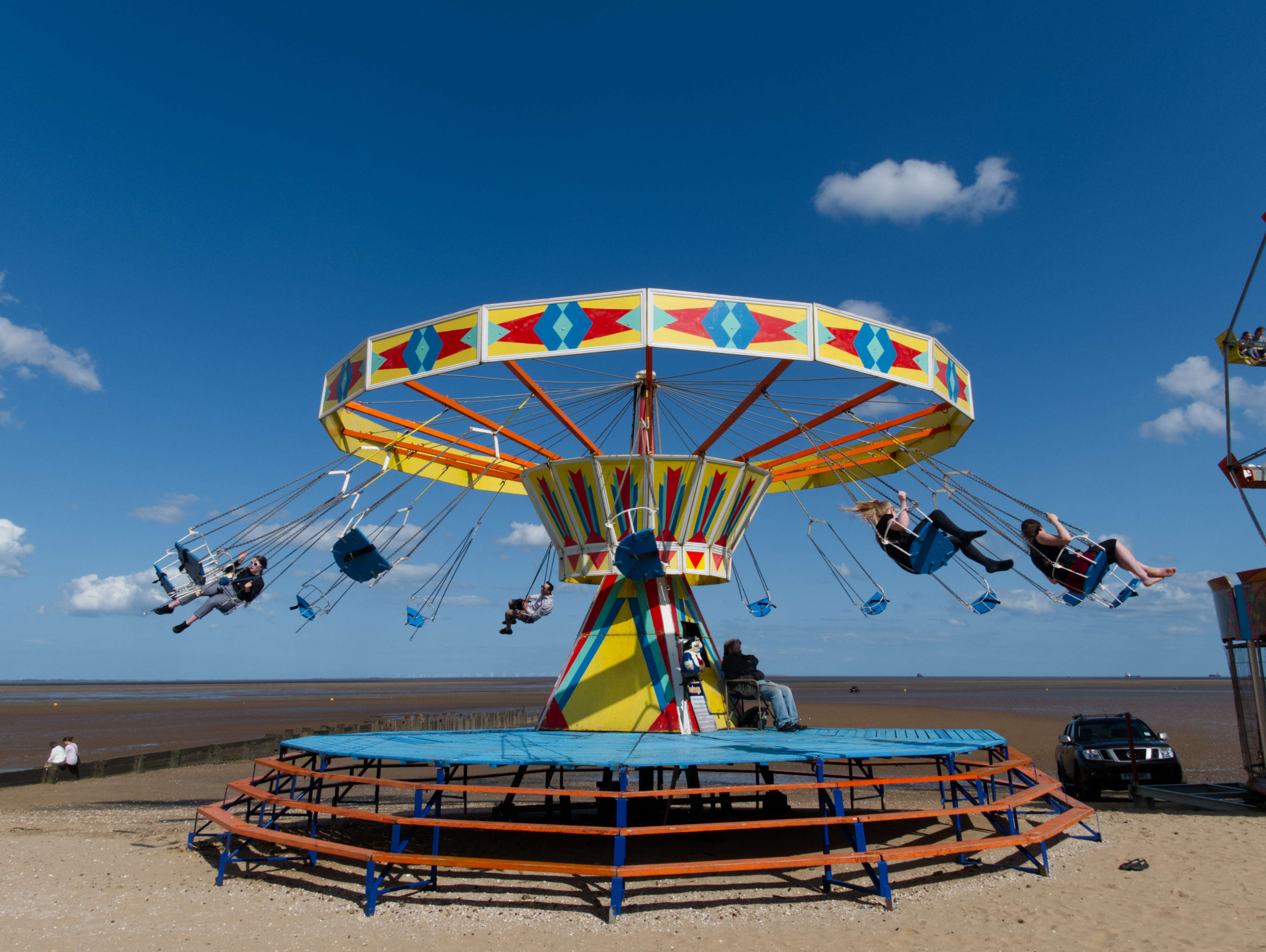Round and round lifted up in chained safe chairs