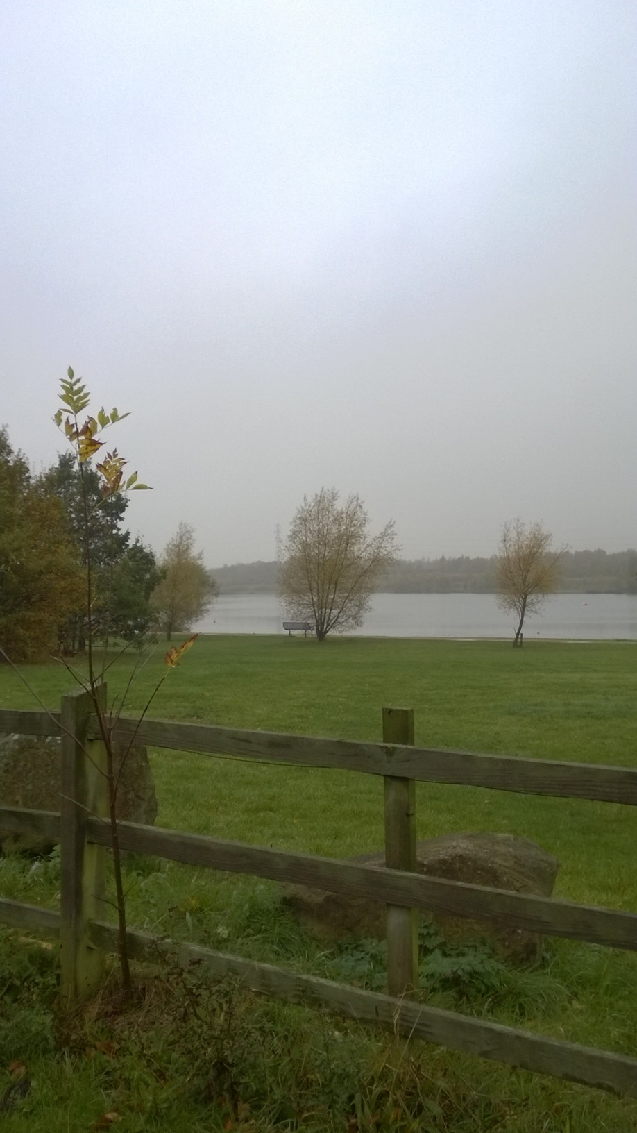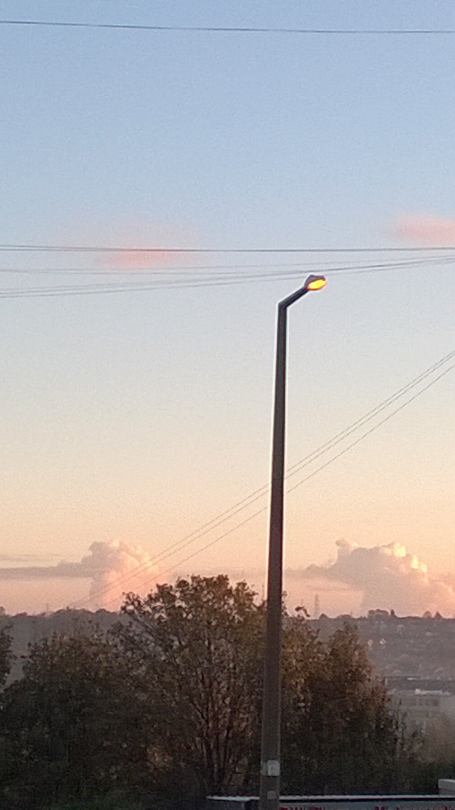 Autumn scaffold sky repair ahead of Winter’s discontent. Warning strikes above tree silhouette.