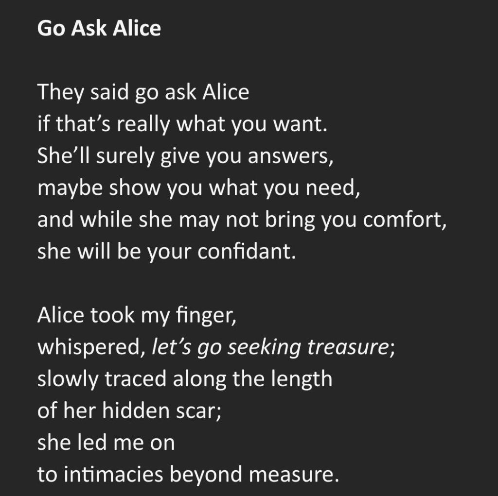 A4.1 (2023): I think it’s important for characters in poems (as in any literature) to be authentic and relatable, to use vocabulary and sentence structure that adds dimension to them for the reader. How a person speaks is often an immediate way to steer the reader to understand that character and to flesh out their world.