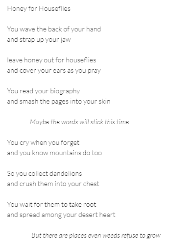 Poetry, especially, writes itself out of an inner need to express something true, necessary, and/or idiosyncratic and when it succeeds, it’s like a small realignment that clicks somewhere deep inside you… as a writer and as a reader. Some of those realignments have become so embedded that they’re part of me now and others are so new I can still feel the wonkiness of them as I try to make sense of what else needs to shift as a result.