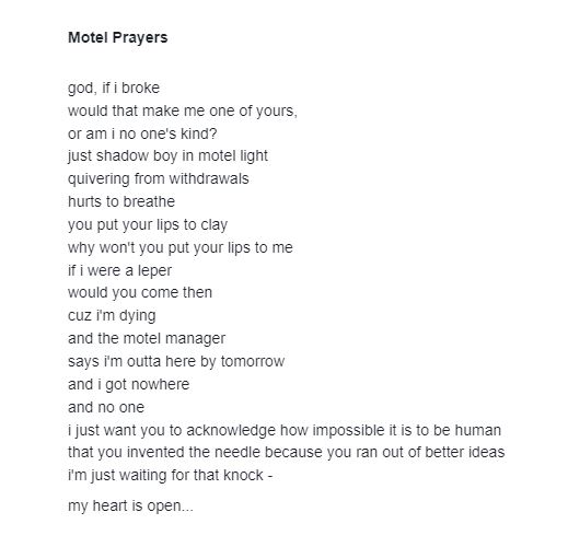You can communicate a lot of the emotional landscape by playing around with white space and it’s often the first thing I start looking at when I edit a poem. Or what I need to change if a poem is almost there but still isn’t working.