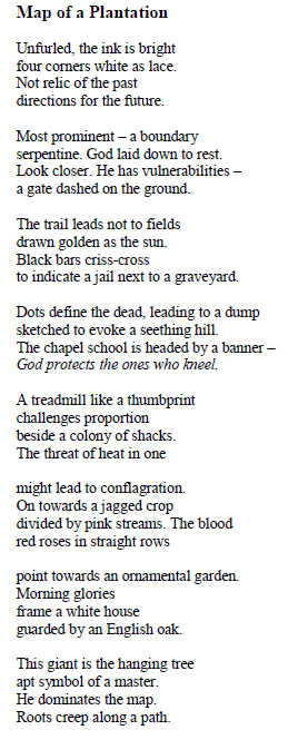 It won’t be easy for me to write about Map of a Plantation, the title poem of my second collection, mainly because I don’t know where it came from or why I decided to write it. I think that happens with lots of poems – they simply appear unbidden and, apart from a few tweaks, seem to write themselves.